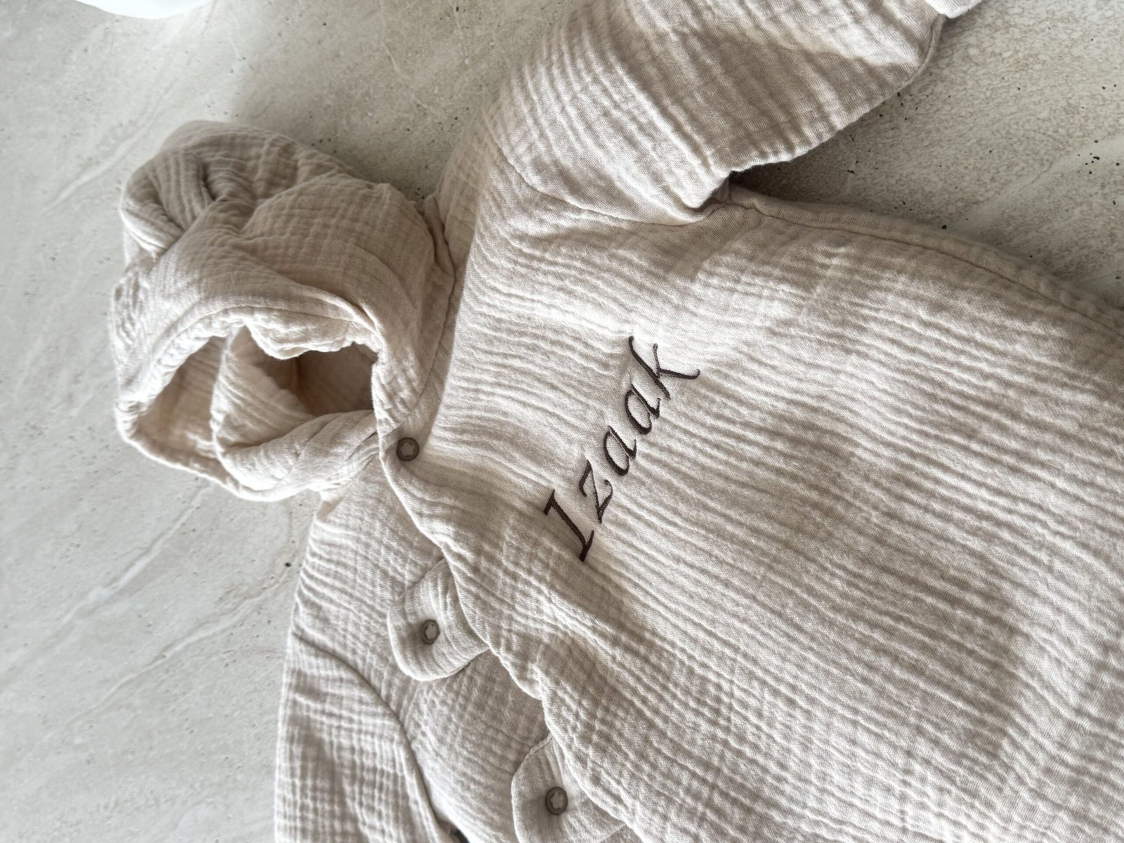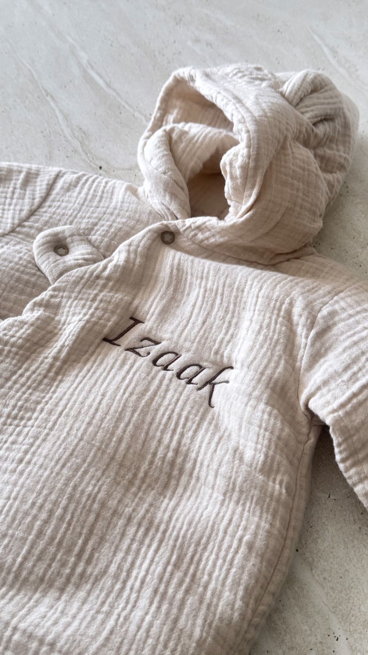 Cette combinaison pilote bébé en gaze de coton a été pensée pour les promenades et sorties par temps frais. La matière en double gaze apporte une douceur moelleuse à l’intérieur comme à l’extérieur, tout en restant légère et confortable pour bébé. La coupe intégrale protège entièrement le corps, des épaules aux chevilles, afin que bébé reste bien au chaud dans sa poussette, son cosy ou son porte‑bébé.
