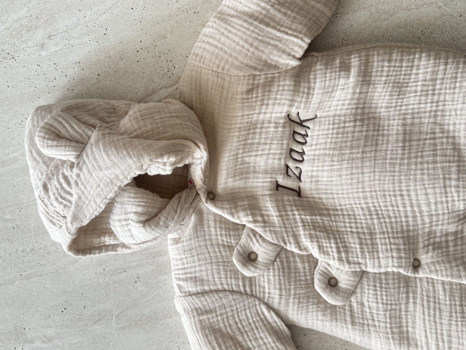 La combinaison pilote est dotée d’une ouverture pratique (boutons ou zip selon ton modèle) qui facilite l’habillage et le change, même lorsque bébé dort. Les finitions soignées et la matière respirante permettent de réguler la température, pour éviter que bébé n’ait ni trop chaud ni trop froid. Son coloris neutre et chic s’accorde parfaitement avec l’univers doux d’ELJI ATELIER et convient aussi bien aux petites filles qu’aux petits garçons.